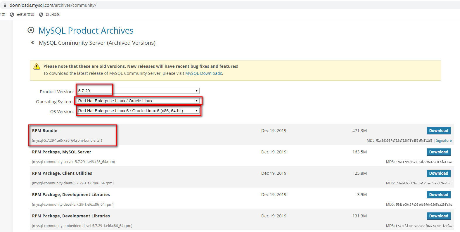 下载的文件为:mysql-5.7.29-1.el6.x86_64.rpm-bundle.tar