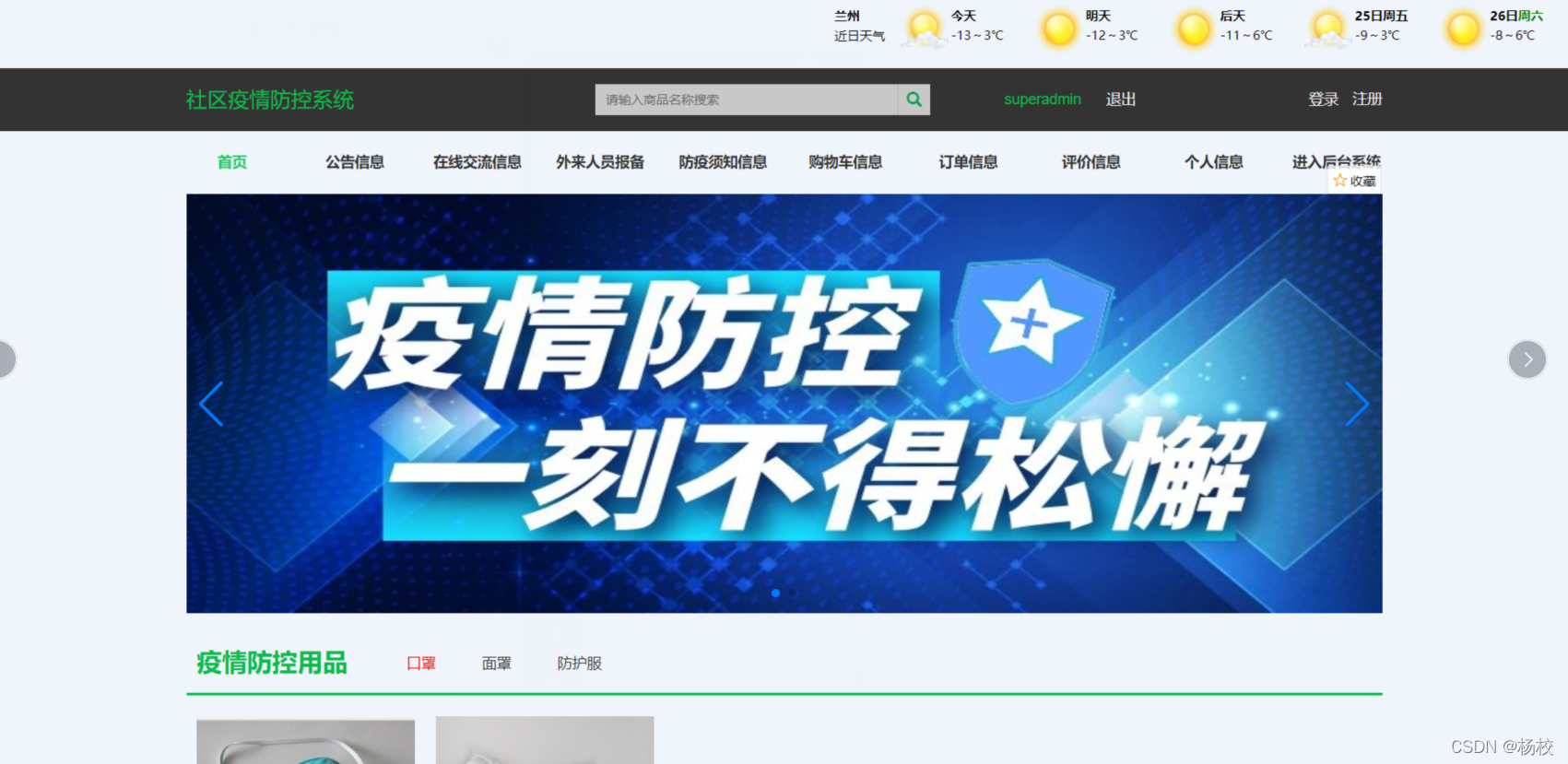 1. 获取代码: 添加博主微信获取,备注来源: mryang511688 2. 项目描述 基于SSM框架开发的社区疫情管理系统。 3. 项目功能 本项目分为三个角色:普通用户、管理员、超级管理员。 普通用户有登...